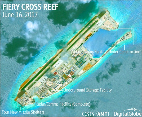 中國在南沙與西沙群島持續建設,新設施面積達廿九公頃(廿九萬平方公尺),打造中國海、空基地前哨站的意圖甚明。