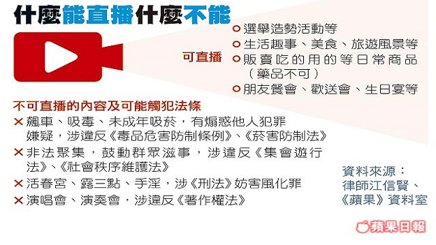 直播時勿鼓吹犯罪 小心觸法