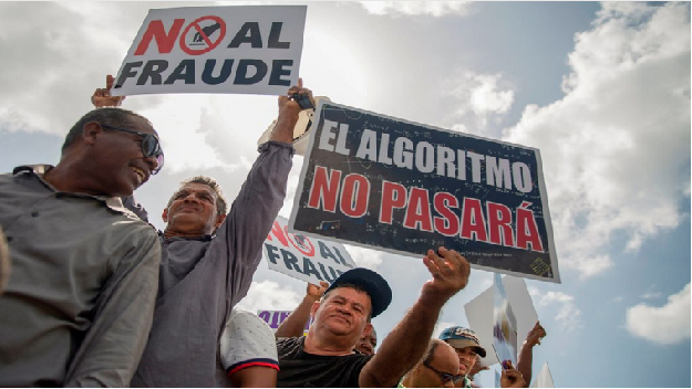 多米尼加共和國的電子投票系統有被操控的風險,該國的人民在中央選舉委員會進行示威遊行。