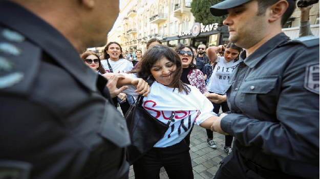 亞塞拜然警方以暴力方式遏止人民的和平遊行。